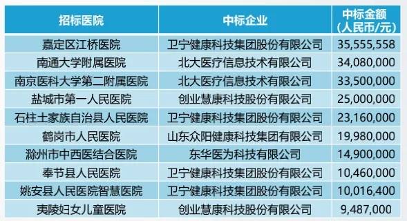在智慧医院领域,医疗IT企业、硬件厂商、医疗设备厂商均有参与,但其中的信息化建设主力军具有先发优势,尤其是已经上市的医疗IT龙头企业,基本垄断了大额智慧医院项目。